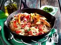 Grate the cheese over the pan. Bake in the preheated oven at the highest setting for approx. 5 minutes or grill over the top. Or simply stir in the cheese and let it melt