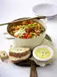 Blanch the Brussels sprouts in boiling salted water for about 3 minutes. Rinse cold in a sieve, drain well and cut in half. Peel garlic and cut into slices. Cut Pancetta into pieces. Wash the thyme, shake dry, remove leaves from the stalks. Slice parmesan