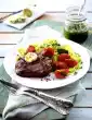 Heat 2 tablespoons of oil in a frying pan. Fry the sausage for 6-8 minutes while turning. Take out, let it cool down a bit and cut it into pieces of about 2.5 cm. Wash and halve the tomatoes