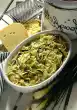 Mix 300 g flour, eggs, 1 teaspoon salt, nutmeg and mineral water to a smooth, thick dough. Let dough rest for about 1 hour. In the meantime, wash and clean the cucumber and slice it. Mix with sour cream and season to taste with vinegar, salt and pepper. Grate cheese finely. Bring plenty of salt water and oil to the boil.