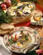 Cut 1 cake base while still warm into 12 pieces (fans) immediately. Pour the cherries into a sieve and drain. Stir 5-6 tablespoons cherry juice, starch and 50 g sugar until smooth. Bring the rest of the cherry juice to the boil, stir in the mixed starch, bring to the boil and simmer for about 1 minute while stirring. Add the cherries. Remove 3 tablespoons and cover immediately with foil. Spread the remaining cherries on a base. Place the second base on top and let it cool down. Whip the cream until stiff and allow the vanilla sugar to trickle in. Spread the cream loosely on the second base. With the cherries set aside, place 9 small heaps of cherries at even intervals on the outer edge of the cream. Place a fan on top and dust with icing sugar. Add the remaining 3 extra compartments