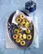 Place the pretzels on 2 baking trays lined with baking paper. Brush with cream and sprinkle with 30 g chopped nuts. Bake one after the other in a preheated oven (electric range: 200 °C/ convection oven: 175 °C/ gas: level 3) for 7-8 minutes. Remove the biscuits from the oven and let them cool down. Dust with icing sugar