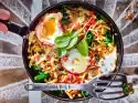 Boil up plenty of salted water for the pasta. Clean, wash and cut the leek into rings. Cut bacon into thin strips. Heat oil in a pan. Fry the bacon thoroughly. Add leek and steam. Season with salt and pepper.