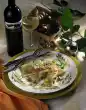 Arrange spiced vegetable rice on plates. Garnish with coriander leaves.