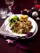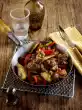 Sauté the onion and the smoked pork in the frying fat all around. Add apple and pear. Fry everything for 2-3 minutes. Deglaze with 1/4 l water. Bring to the boil and stir in the stock. Add potatoes again.