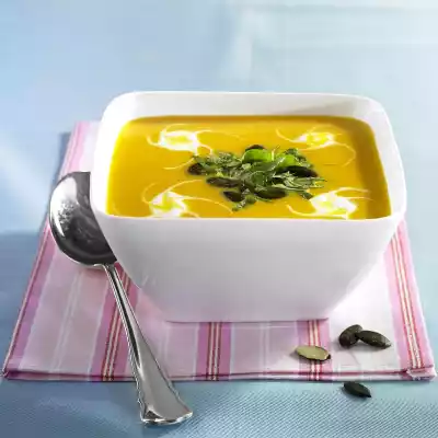 Puree finely with a hand blender. Chill the soup for about 30 minutes. Wash coriander, shake dry, pluck leaves from the stalks and cut into strips. Stir crème légère with 2 teaspoons of water until smooth. Arrange the soup in a bowl with pumpkin seeds, coriander and crème légère. Picture 1: Garnish with chilli pepper