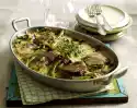 Cut the fillet open and arrange on plates with the beans. Bread tastes good with it.