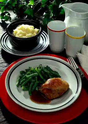 Arrange beans, chops and sauce on plates. Mashed potatoes taste good with it.