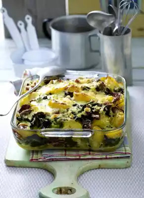 Cut the potatoes into slices. Drain the spinach. Both alternately