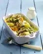 Finish with potatoes. Crumble bread. Spread crumbs and 2 tablespoons of fat in flakes on the gratin. Bake in the preheated oven (electric range: 200 °C/ convection oven: 175 °C/gas: level 3) for 30-45 minutes until golden brown