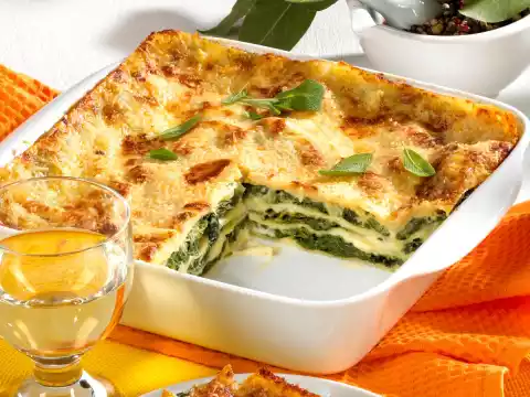 Deglaze with cream and remove from heat. Stir in sage and half of the parmesan. Season to taste with salt and pepper. Grease an ovenproof dish. Place the lasagne sheets and spinach alternately in the mould and pour some sauce over each.