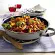 Fry the bacon in a wide pan or a frying pan (with lid) without fat until crispy. Remove and drain. Drain fat, except for 2 tbsp.