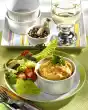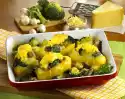 Peel and wash the potatoes, cut them lengthwise into slices and fry them in 2 tablespoons of oil for about 10 minutes at a mild heat. Peel onions, cut into rings and add to the potatoes. Heat 2-3 tablespoons of water in a small saucepan, add the frozen spinach, cover and let it melt for about 10 minutes.