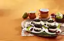 Cut the gorgonzola into small pieces. Wash the spinach and spin dry. Fold the spinach with the two cheeses and 1 tablespoon butter into the hot polenta. Season to taste with salt, pepper and nutmeg. Arrange the polenta on plates with the pears and caramel stock. Drizzle with olive oil and lemon juice. Season with pepper. Serve immediately