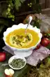 Bring cream and stock to the boil. Season with salt and pepper. Add polenta while stirring with a whisk and let it swell for about 5 minutes at a mild heat, stirring frequently with a wooden spoon. The polenta is cooked when it has lost its granular structure