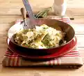 Bring cream and stock to the boil. Season with salt and pepper. Add polenta while stirring with a whisk and let it swell for about 5 minutes on a mild heat, stirring frequently with a wooden spoon.