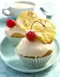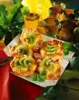 Let it cool down. In the meantime, whip cream and sugar until stiff. Stir in mocca solution bit by bit. Pour into a piping bag with a star-shaped spout and squirt evenly into the omelettes. Peel off the chocolate grater with a peeler and sprinkle over the omelettes. Arrange on a plate. Before serving, decorate with lemon balm leaves and dust with icing sugar