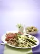 Drain the cucumbers and dice finely. Finely chop the eggs. Mix mayonnaise and yoghurt. Stir in eggs and cucumber. Season to taste with salt, pepper and 1-2 tbsp vinegar. Cut potatoes into slices. Heat clarified butter in a large pan. Fry the potatoes for 20-30 minutes, turning them over. Peel and finely dice onions. Add onions and bacon only shortly before the end of the frying time. Season potatoes with salt and pepper. Arrange aspic with fried potatoes and tartar sauce. Sprinkle with herbs set aside