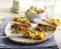 Peel and wash the potatoes and cook them in boiling salted water for about 20 minutes. Boil eggs for about 8 minutes, rinse in cold water, peel and halve. Peel, wash and slice carrots.
