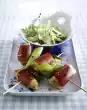 Arrange salad and meat on a plate.