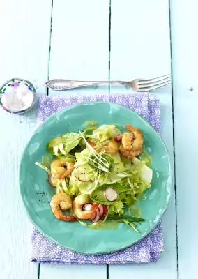 Season with salt, pepper and lemon juice. Clean the pointed cabbage, cut in half and cut into strips from the stalk. Peel kohlrabi and cut into very thin slices. Clean, wash and slice the radishes.