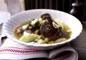 For the semolina dumplings, wash parsley, shake dry and chop the leaves. Grate the cheese finely. Boil up 1/4 l water, butter, approx. 1/2 teaspoon salt, some pepper and 1 pinch nutmeg. Sprinkle in semolina and stir with a wooden spoon until the mixture comes off the bottom of the pot.