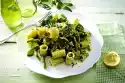 Prepare the pasta in boiling salted water according to the instructions on the packet. Simmer cream and lemon juice in a pot for about 3 minutes, season with salt and pepper, add about half of the peas, let simmer for 1-2 minutes, puree sauce, stir in remaining peas.