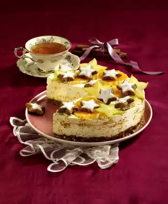 Whip cream and vanilla sugar until stiff, fold in. Cover the base with the rim of the springform pan, pour in the cream, chill for at least 2 hours. Loosen the rim of the springform pan. Sprinkle the cake all around with another 30 g of ground cinnamon stars. To decorate, carefully peel and slice the clementines. Wash the carambola, grate dry and also cut into slices. Cover cake with prepared ingredients and remaining cinnamon stars