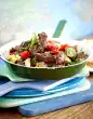 Preheat oven (electric cooker: 150 °C/circulating air: 125 °C/gas: see manufacturer). Line baking tray with baking paper. Dab meat dry. Heat 1 tablespoon of oil in a large pan. Brown the meat on each side.