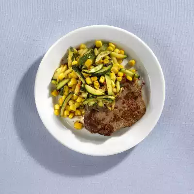 Season with salt and pepper. Remove the fillet and keep warm. Add zucchini to the frying fat and fry for about 3 minutes. Add corn, mix with the zucchini sticks and fry for 1-2 minutes. Season with salt and pepper.
