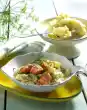 Clean and wash the artichokes and tie a slice of lemon under each end of the stem with kitchen string. Cook the artichokes in plenty of boiling salted water for 30-40 minutes. Peel and finely dice 1 onion. Heat the fat in a pot and fry the onion cubes in it until transparent. Add rice, sauté briefly and add stock. Add saffron and some salt, bring to the boil, cover and let it swell for about 20 minutes at low heat. Wash salmon fillet, dab dry and cut into 8 pieces. Cut the remaining onion in half and boil it up with white wine, 150 ml water, some salt and pepper, lemon juice and peel. Put the salmon fillet in and let it simmer covered at low heat for 8-10 minutes. Meanwhile wash, halve, seed and dice the tomatoes. Wash the chives, dab dry and cut into small rolls. Drain fish and keep warm. Pour fish stock through a sieve. Stir cornflour and a little water until smooth, stir into the stock and bring to the boil again briefly. Season to taste with some instant stock and place the fish in the hot sauce again briefly. Drain the artichokes and arrange on plates with rice and fish. Sprinkle with chives and tomatoes and serve garnished with dill flowers and lemon wedges