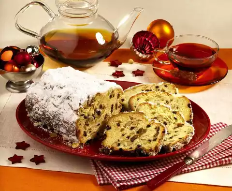 Grease the box form (approx. 28 cm length; 2 litres capacity). Add the dough strand. Cover and leave to rise for about 30 minutes. Bake in the preheated oven (electric cooker: 200 °C/ no air: 175 °C/ gas: level 3) for 45-50 minutes. Melt 50 g butter. Take the stollen out of the oven and brush with half of the butter. Sprinkle half of the remaining sugar on the stollen and sieve half of the powdered sugar on the stollen. Repeat the process