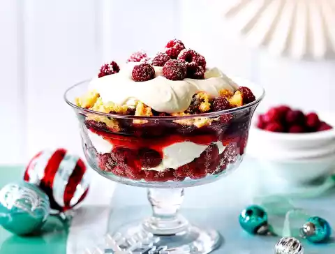 Put about 75 g of frozen berries in a glass bowl. Spread a good half of the vanilla cream on top. Spread the rest of the berries, except for a few for decoration, on top. Add the raspberry puree. First cut the stollen into slices, then break into pieces.