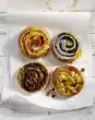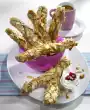 Fold in chopped chocolate. Spread the mixture into the bowls. Bake in the preheated oven (electric cooker: 175 °C/ convection oven: 150 °C/ gas: level 2) for 20-25 minutes (test with sticks!). Remove the muffins and let them cool down. Melt 150 g chocolate and coconut fat over a warm water bath. Leave to cool until the chocolate begins to thicken. Dip the muffins with the surface into the chocolate and let them get firm. If necessary, reheat the rest of the chocolate. Spread thinly on a cool marble board or the back of a baking tray and refrigerate. As soon as the chocolate is firm, scrape with a spatula or pallet of rolls.