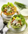 Wash the chicken filet and pat dry. Heat oil in a pan. Fry the chicken filet for 5 minutes on each side. Take it out, season with salt and pepper and let it cool down. Clean and wash the iceberg lettuce, drain well and cut into large pieces.