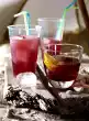 Wash, drain, clean and quarter the strawberries. Cut the vanilla pod lengthwise and scrape out the pulp. Mix vanilla pulp, lime juice, gin, mineral water and strawberry syrup in a bowl. Add strawberries and fill up with ice. Arrange punch in glasses and decorate with vanilla beans