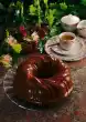 Place the cake ring around the bottom cake base. Place the groats on top, smooth it down and place the top layer on top. Chill for 2-3 hours. Whip the cream until stiff, fill into a piping bag with a large star-shaped spout. Remove the cake from the ring, spray tuffs onto the cake. Decorate with strawberries and purée set aside