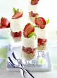 Wash and clean the strawberries. Set aside 1 strawberry for decoration. Puree 300 g strawberries. Cut 100 g strawberries into small cubes. Mix mascarpone, quark and sugar in a bowl. Mix in the strawberry puree and dices. Whip 200 g cream with the whisks of the hand mixer until stiff. Carefully fold into the quark mixture