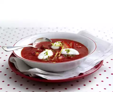 Place the strawberry pieces in the cold dish. Beat the egg white until stiff, adding sugar and salt. Beat until the mixture is shiny and the sugar has dissolved. Heat the water in a wide saucepan, do not let it boil.