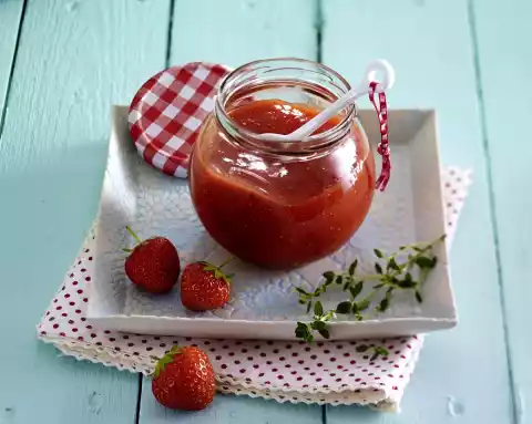 Place the ginger, strawberries, vodka, thyme and jam sugar in a tall container and mix with the blender for about 45 seconds.