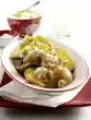 Squeeze out the gelatine and dissolve at low heat. Stir into the sour cream. Fold in strawberries, ginger and cream and refrigerate for gelling. Halve the sponge base crosswise. Cut the edges smooth. Spread one half of the dough with the filling. Place the second half of the dough on top and press down slightly. Smooth the edges. Let the cake cool down in the refrigerator for about 2 hours. Whip the rest of the cream until stiff. Dust the cake with icing sugar. Decorate with cream tuffs, strawberries and possibly mint leaves. Makes 8 pieces
