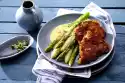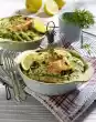Fold the cream into the mascarpone. Remove the baking paper from the cake base. Spread about 1/3 of the cream on one cake base. Cover with 1/3 of the strawberries and sprinkle with half of the chocolate sauce. Place the second cake base on top. Spread 1/3 of the cream on top and cover with 1/3 of the strawberries. Drizzle with the rest of the sauce, place the last cake layer on top and spread with the rest of the cream. Spread the rest of the strawberries on top. Warm the strawberry jelly slightly and spread on the strawberries. Sprinkle with almond flakes. Put the cake in a cool place for about 1 hour
