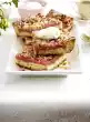Put the fruits in 4 greased ramekins or on ovenproof plates and pour almond foam over them. Sprinkle with almond flakes. Gratinate under the preheated grill of the oven at the highest level for 2-3 minutes until golden brown. Dust with icing sugar and serve immediately