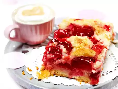 Stir the jam until smooth and mix with the fruit. Spread evenly on the dough. Distribute the coconut mixture in blobs. Bake in the preheated oven (electric cooker: 175 °C/ convection oven: 150 °C/ gas: see manufacturer) on the bottom shelf for about 1 hour. Take the cake out of the oven and let it cool down on a cake rack. Cut into pieces