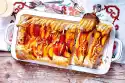 Spread to form a rectangle (approx. 24 x 30 cm). Bake in the preheated oven (electric cooker: 200 °C/ convection oven: 175 °C/ gas: see manufacturer) for approx. 12 minutes. Take out the sponge cake and turn out on a tea towel sprinkled with sugar. Peel off the paper. Roll up the sponge cake with the help of the tea towel and let it cool down.
