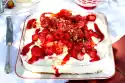 Mix cheese, 100 g sugar and lemon juice. Whip 300 g cream until stiff. Fold cheese first, then cream into the jelly. Spread on the strawberries. Cool for about 6 hours. After approx. 1 hour place the 2nd pastry sheet on top