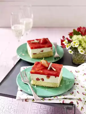 Soak gelatine in cold water. Wash, clean and pat dry the strawberries. Cut 200 g into small cubes and 500 g into quarters. Puree remaining strawberries with 3 tbsp. sugar and juice of 1 lemon. Mix sour cream, quark, 100 g sugar, 200 ml prosecco and juice of 1 lemon. Squeeze out the gelatine, dissolve, stir in approx. 3 tbsp. cream, then stir into the remaining cream. Chill the cream until it begins to gel. Whip cream until stiff. Fold the strawberry cubes and cream into the cream. Spread half of the cream on each base and smooth it down. Chill for about 1 hour.