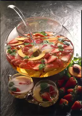 Pour prepared ingredients into a bowl. Add wine. Top up with sparkling wine or tonic as desired.