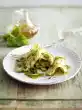 Melt 125 g butter in a small pot. Remove the dough sheets from the packet. First place a damp, then a dry tea towel on the work surface. Lay 4 dough rectangles overlapping to form a large rectangle (approx. 43 x 51 cm), brushing each dough sheet with some butter. Place 4 more dough sheets on top, also brush with butter. Spread the two remaining pastry sheets with butter and lay them overlapping on one half of the rectangle (25.5 x 43 cm).
