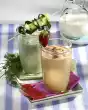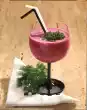 Squeeze the lime. Wash and clean the strawberries. Put 1 strawberry aside for decoration. Sort the raspberries. Wash the peach and cut the flesh off the stone. Puree the strawberries, raspberries and peach with the hand blender, pass through a sieve and stir in the lime juice. Pour into a glass and decorate with the remaining strawberries